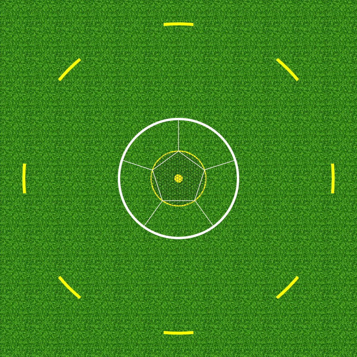 - Place your Roundnet set on top of the NHZ so each leg is on one point of the inner pentagon.
